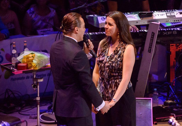 A continuación, Urbán salió al escenario y Castro se arrodilló ante ella para ofrecerle un anillo y preguntarle: "¿Te casarías conmigo?".